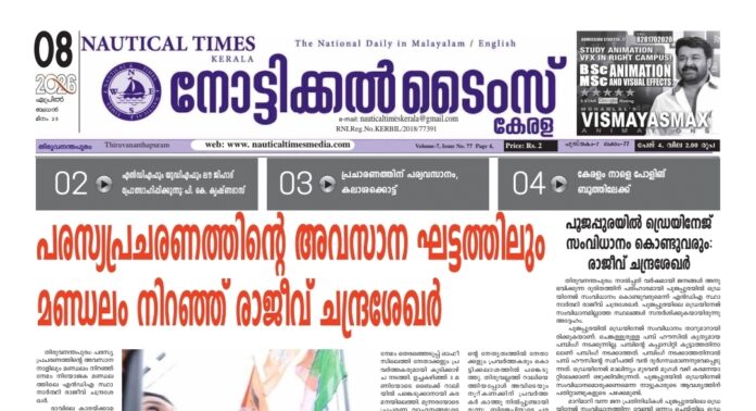 HomeE PAPERApr 08 E PAPER Apr 08 By Yesudas Williams April 8, 2026 0 7 Share FacebookTwitterPinterestWhatsApp apr8-nau_260408_070821 TagsNautical Times Kerala Share FacebookTwitterPinterestWhatsApp Previous articleMar 27 Yesudas Williams RELATED ARTICLES E PAPER Mar 27 March 27, 2026 E PAPER Jan 10 January 10, 2026 E PAPER Jan 01 January 1, 2026 LEAVE A REPLY Cancel reply Comment: Please enter your comment! Name:* Please enter your name here Email:* You have entered an incorrect email address! Please enter your email address here Website: Save my name, email, and website in this browser for the next time I comment. - Advertisment - Most Popular Mar 27 March 27, 2026 Jan 10 January 10, 2026 Jan 01 January 1, 2026 Dec 31 December 31, 2025 Load more Recent Comments