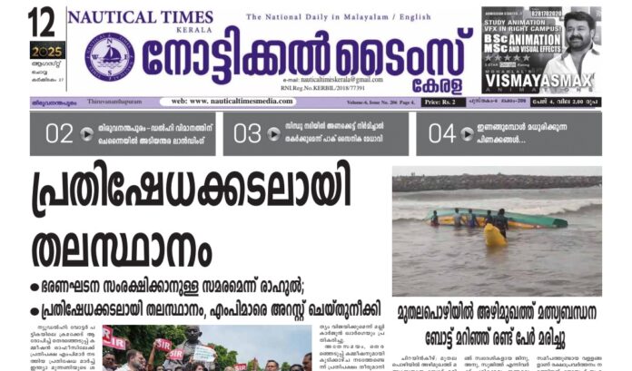 HomeE PAPERAug 12 E PAPER Aug 12 By Yesudas Williams August 12, 2025 0 273 Share FacebookTwitterPinterestWhatsApp aug-12-nau_250812_070430 TagsNautical Times Kerala Share FacebookTwitterPinterestWhatsApp Previous articleAug 10Next articleAug 14 Yesudas Williams RELATED ARTICLES E PAPER Nov 7 November 7, 2025 E PAPER Nov 6 November 6, 2025 E PAPER Oct 25 October 25, 2025 LEAVE A REPLY Cancel reply Comment: Please enter your comment! Name:* Please enter your name here Email:* You have entered an incorrect email address! Please enter your email address here Website: Save my name, email, and website in this browser for the next time I comment. - Advertisment - Most Popular Nov 7 November 7, 2025 Nov 6 November 6, 2025 Oct 25 October 25, 2025 Oct 24 October 24, 2025 Load more Recent Comments