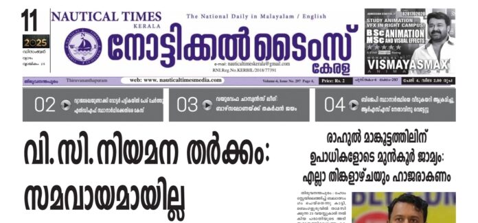 HomeE PAPERDec 11 E PAPER Dec 11 By Yesudas Williams December 11, 2025 0 71 Share FacebookTwitterPinterestWhatsApp dec11-nau_251211_103841 TagsNautical Times Kerala Share FacebookTwitterPinterestWhatsApp Previous articleDec 07Next articleDec 12 Yesudas Williams RELATED ARTICLES E PAPER Dec 12 December 12, 2025 E PAPER Dec 07 December 7, 2025 E PAPER Dec 05 December 5, 2025 LEAVE A REPLY Cancel reply Comment: Please enter your comment! Name:* Please enter your name here Email:* You have entered an incorrect email address! Please enter your email address here Website: Save my name, email, and website in this browser for the next time I comment. - Advertisment - Most Popular Dec 12 December 12, 2025 Dec 07 December 7, 2025 Dec 05 December 5, 2025 Dec 3 December 3, 2025 Load more Recent Comments
