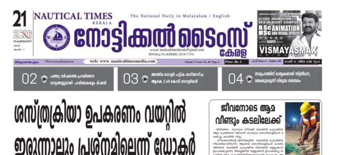 HomeE PAPERFeb 21 E PAPER Feb 21 By Yesudas Williams February 21, 2026 0 9 Share FacebookTwitterPinterestWhatsApp feb21-nau TagsNautical Times Kerala Share FacebookTwitterPinterestWhatsApp Previous articleFeb 20 Yesudas Williams RELATED ARTICLES E PAPER Feb 20 February 20, 2026 E PAPER Feb 19 February 19, 2026 E PAPER Feb 17 February 18, 2026 LEAVE A REPLY Cancel reply Comment: Please enter your comment! Name:* Please enter your name here Email:* You have entered an incorrect email address! Please enter your email address here Website: Save my name, email, and website in this browser for the next time I comment. - Advertisment - Most Popular Feb 20 February 20, 2026 Feb 19 February 19, 2026 Feb 17 February 18, 2026 Feb 11 February 10, 2026 Load more Recent Comments