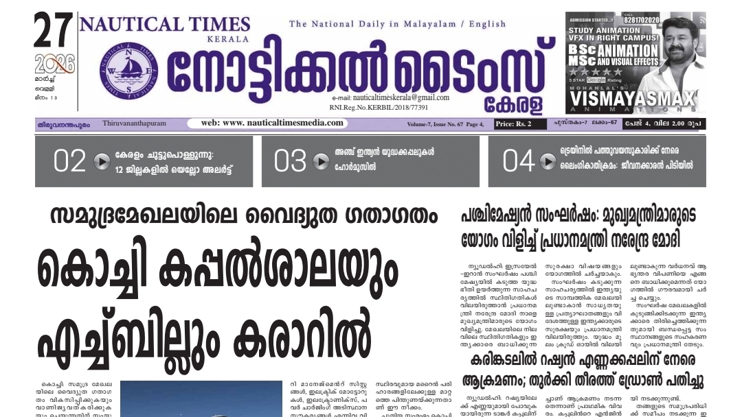 HomeE PAPERMar 27 E PAPER Mar 27 By Yesudas Williams March 27, 2026 0 105 Share FacebookTwitterPinterestWhatsApp mar27-nau_260327_073013 TagsNautical Times Kerala Share FacebookTwitterPinterestWhatsApp Previous articleJan 10 Yesudas Williams RELATED ARTICLES E PAPER Jan 10 January 10, 2026 E PAPER Jan 01 January 1, 2026 E PAPER Dec 31 December 31, 2025 LEAVE A REPLY Cancel reply Comment: Please enter your comment! Name:* Please enter your name here Email:* You have entered an incorrect email address! Please enter your email address here Website: Save my name, email, and website in this browser for the next time I comment. - Advertisment - Most Popular Jan 10 January 10, 2026 Jan 01 January 1, 2026 Dec 31 December 31, 2025 Dec 18 December 18, 2025 Load more Recent Comments