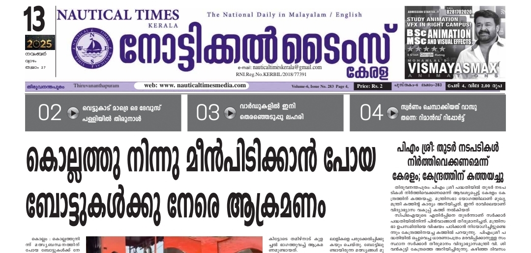 HomeE PAPERNov 13 E PAPER Nov 13 By Yesudas Williams November 13, 2025 0 108 Share FacebookTwitterPinterestWhatsApp nov13-nau_251113_094247 TagsNautical Times Kerala Share FacebookTwitterPinterestWhatsApp Previous articleNov 12Next articleNov 14 Yesudas Williams RELATED ARTICLES E PAPER Nov 21 November 21, 2025 E PAPER Nov 19 November 19, 2025 E PAPER Nov 18 November 19, 2025 LEAVE A REPLY Cancel reply Comment: Please enter your comment! Name:* Please enter your name here Email:* You have entered an incorrect email address! Please enter your email address here Website: Save my name, email, and website in this browser for the next time I comment. - Advertisment - Most Popular Nov 21 November 21, 2025 Nov 19 November 19, 2025 Nov 18 November 19, 2025 Nov 15 November 15, 2025 Load more Recent Comments