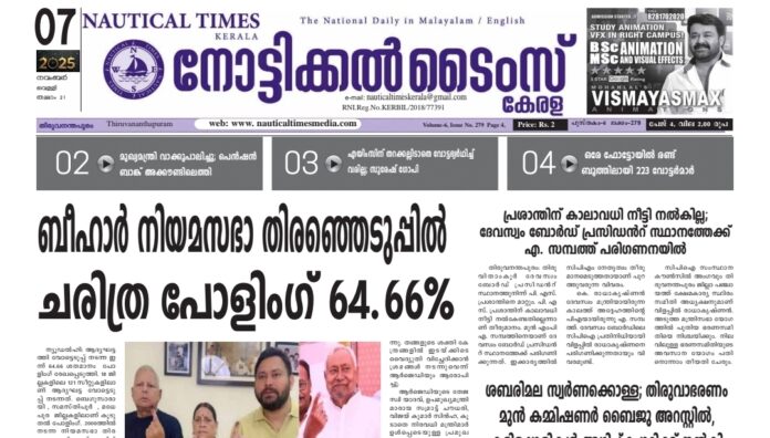 HomeE PAPERNov 7 E PAPER Nov 7 By Yesudas Williams November 7, 2025 0 37 Share FacebookTwitterPinterestWhatsApp nov7-nau_251107_055616 TagsNautical Times Kerala Share FacebookTwitterPinterestWhatsApp Previous articleNov 6 Yesudas Williams RELATED ARTICLES E PAPER Nov 6 November 6, 2025 E PAPER Oct 25 October 25, 2025 E PAPER Oct 24 October 24, 2025 LEAVE A REPLY Cancel reply Comment: Please enter your comment! Name:* Please enter your name here Email:* You have entered an incorrect email address! Please enter your email address here Website: Save my name, email, and website in this browser for the next time I comment. - Advertisment - Most Popular Nov 6 November 6, 2025 Oct 25 October 25, 2025 Oct 24 October 24, 2025 Oct 16 October 18, 2025 Load more Recent Comments