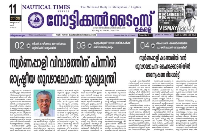 HomeE PAPEROct 11 E PAPER Oct 11 By Yesudas Williams October 11, 2025 0 156 Share FacebookTwitterPinterestWhatsApp octo11-nau_251010_232709 TagsNautical Times Kerala Share FacebookTwitterPinterestWhatsApp Previous articleOct 9Next articleOct 14 Yesudas Williams RELATED ARTICLES E PAPER Nov 7 November 7, 2025 E PAPER Nov 6 November 6, 2025 E PAPER Oct 25 October 25, 2025 LEAVE A REPLY Cancel reply Comment: Please enter your comment! Name:* Please enter your name here Email:* You have entered an incorrect email address! Please enter your email address here Website: Save my name, email, and website in this browser for the next time I comment. - Advertisment - Most Popular Nov 7 November 7, 2025 Nov 6 November 6, 2025 Oct 25 October 25, 2025 Oct 24 October 24, 2025 Load more Recent Comments