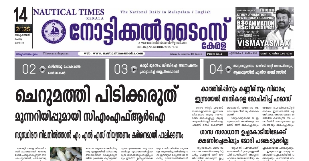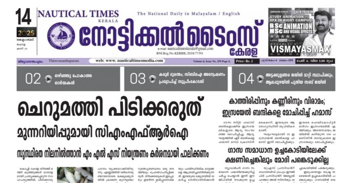 HomeE PAPEROct 14 E PAPER Oct 14 By Yesudas Williams October 14, 2025 0 1260 Share FacebookTwitterPinterestWhatsApp octo14-nau_251014_100959 TagsNautical Times Kerala Share FacebookTwitterPinterestWhatsApp Previous articleOct 11Next articleOct 15 Yesudas Williams RELATED ARTICLES E PAPER Nov 7 November 7, 2025 E PAPER Nov 6 November 6, 2025 E PAPER Oct 25 October 25, 2025 LEAVE A REPLY Cancel reply Comment: Please enter your comment! Name:* Please enter your name here Email:* You have entered an incorrect email address! Please enter your email address here Website: Save my name, email, and website in this browser for the next time I comment. - Advertisment - Most Popular Nov 7 November 7, 2025 Nov 6 November 6, 2025 Oct 25 October 25, 2025 Oct 24 October 24, 2025 Load more Recent Comments