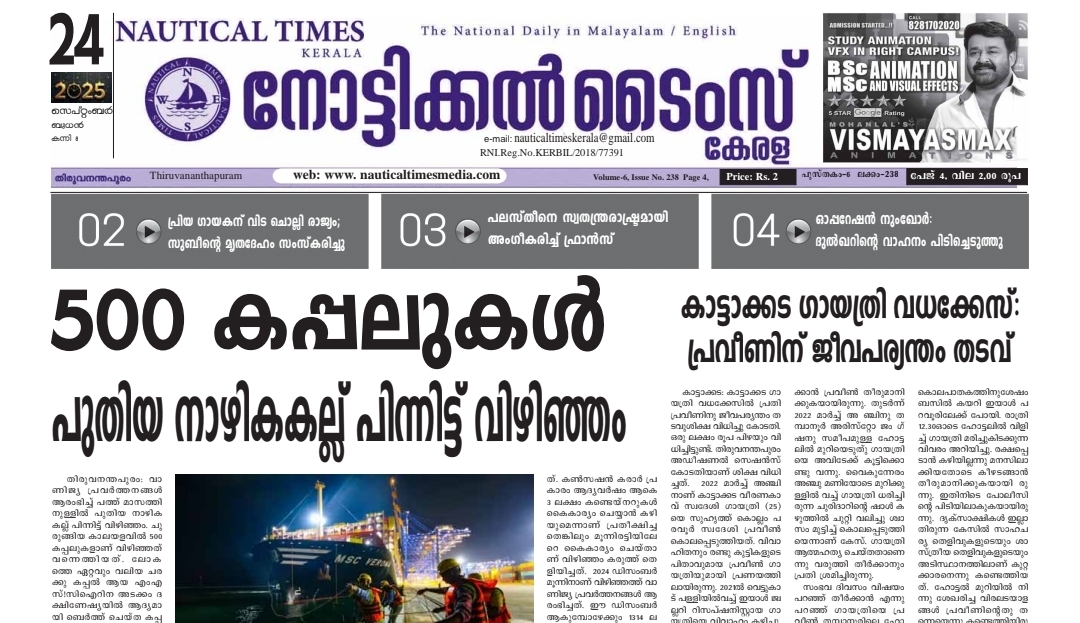 HomeE PAPERSep 24 E PAPER Sep 24 By Yesudas Williams September 24, 2025 0 544 Share FacebookTwitterPinterestWhatsApp sep24-nau_250924_052245 TagsNautical Times Kerala Share FacebookTwitterPinterestWhatsApp Previous articleSep 21Next articleSep 25 Yesudas Williams RELATED ARTICLES E PAPER Nov 7 November 7, 2025 E PAPER Nov 6 November 6, 2025 E PAPER Oct 25 October 25, 2025 LEAVE A REPLY Cancel reply Comment: Please enter your comment! Name:* Please enter your name here Email:* You have entered an incorrect email address! Please enter your email address here Website: Save my name, email, and website in this browser for the next time I comment. - Advertisment - Most Popular Nov 7 November 7, 2025 Nov 6 November 6, 2025 Oct 25 October 25, 2025 Oct 24 October 24, 2025 Load more Recent Comments